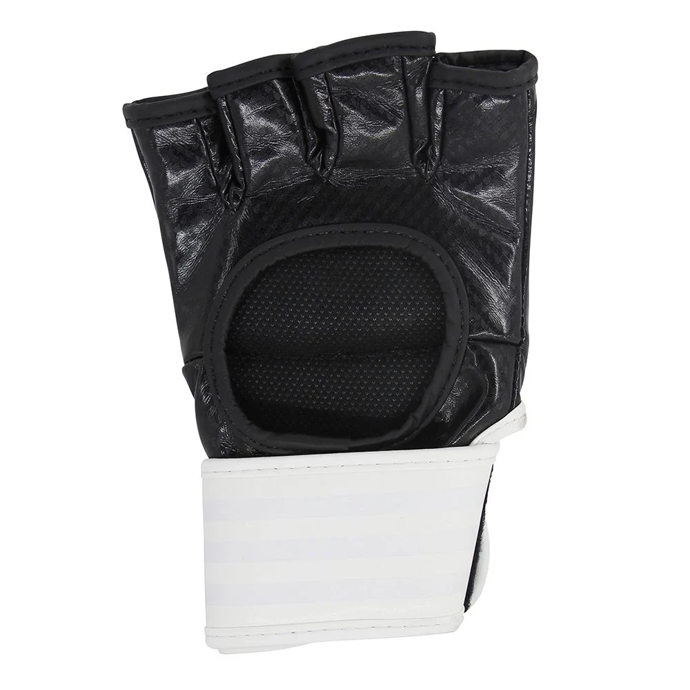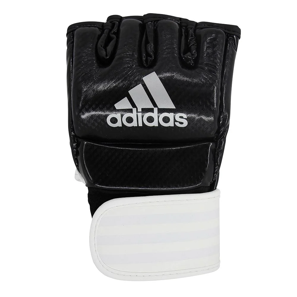Slidstærke og komfortable MMA-handsker fra Adidas i kunstlæder med fri tommelfinger, Amara-inderfor og kraftig polstring samt bred håndledsrem for optimal støtte.