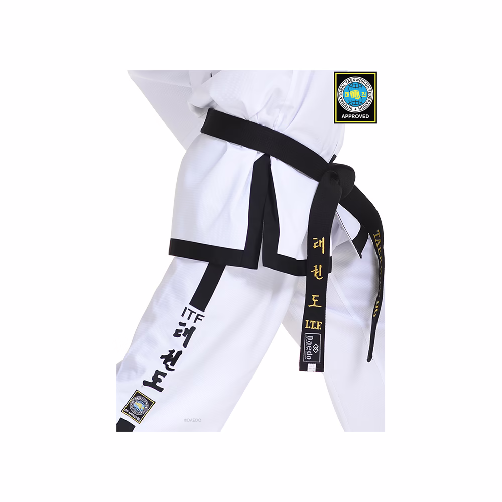 Daedo ITF-godkendt International Instruktør “Ultra High Tech” kvalitets Dobok, som er ideel til både træning og konkurrence. Denne Dobok er fremstillet af slidstærkt og åndbart Ultra High Tech materiale, der sikrer dig komfort og bevægelsesfrihed.