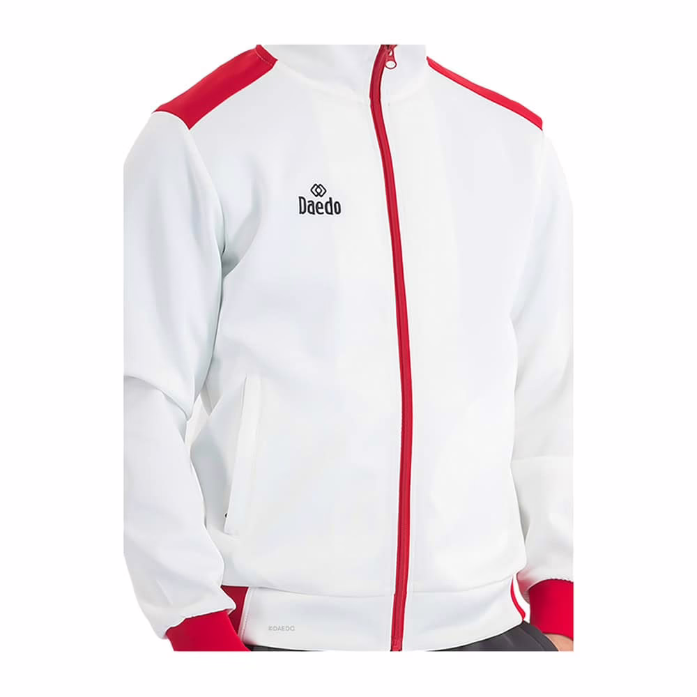 Daedo er kendt for at levere kvalitetsudstyr til kampkunstudøvere verden over, og denne tracksuit er ingen undtagelse. Det slanke snit fremhæver kroppens linjer og giver en moderne silhuet, mens farvekombinationen i hvid, rød og grå udstråler styrke, selvtillid og stil. Dragten er velegnet til både juniorer og voksne, hvilket gør den perfekt til klubber, der ønsker et ensartet og professionelt udtryk.