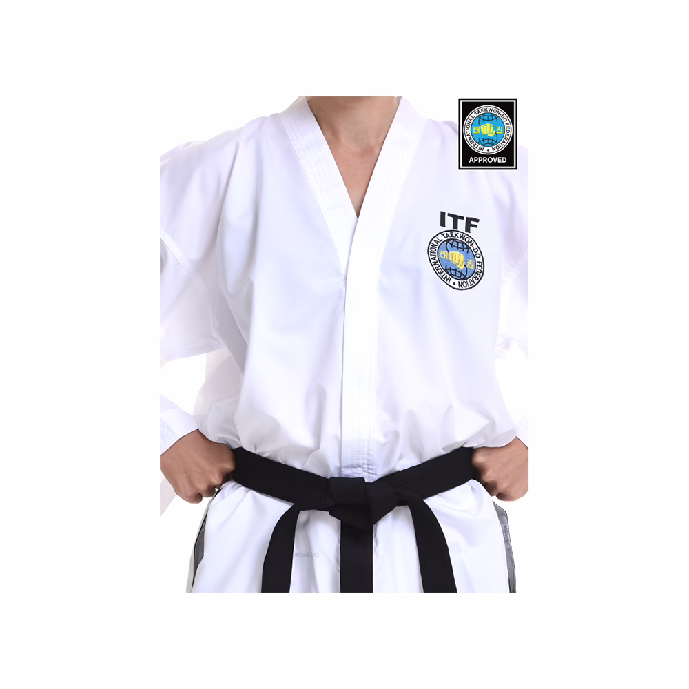 ITF Dobok Black Belt Ultra High-Tech. Hos InVictus Fightwear er vi dedikerede til at levere høj kvalitet og funktionelt til kampsportsentusiaster. Vores Daedo Konkurrence “Ultra High Tech” Black Belt Dobok, som inkluderer både jakke og bukser, er designet med fokus på komfort og holdbarhed.