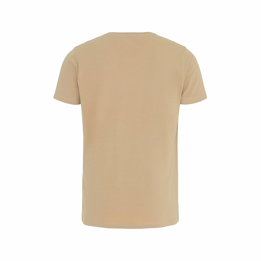 T-shirten er fremstillet af 92 % kæmmet bomuld og 8 % elastan, hvilket giver en blød og elastisk pasform, der følger kroppens naturlige bevægelser. Den lette single jersey-struktur med en vægt på 170 g/m² sikrer en behagelig og åndbar oplevelse – også under fysisk aktivitet.